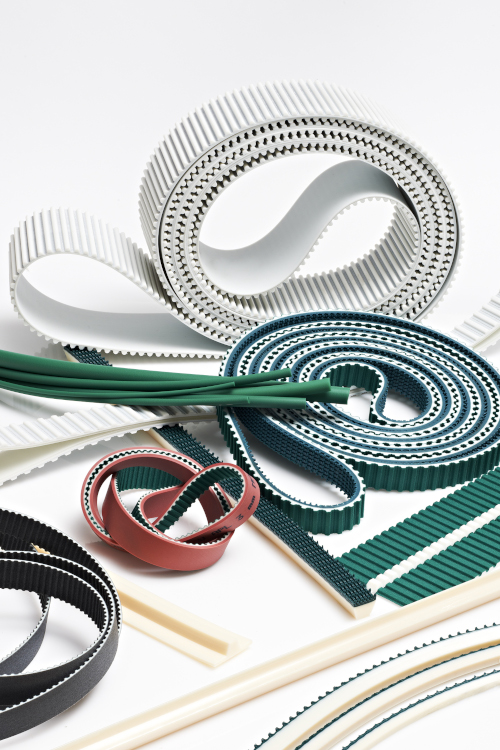 Groot assortiment standaard tandriemen in polyurethaan, per meter of volle rollen, in de meest voorkomende tandafstanden. Alle riemen, polyurethaan of rubber kunnen worden voorzien van verschillende coatings aan de achterzijde en/of met de meenemers die u wenst.